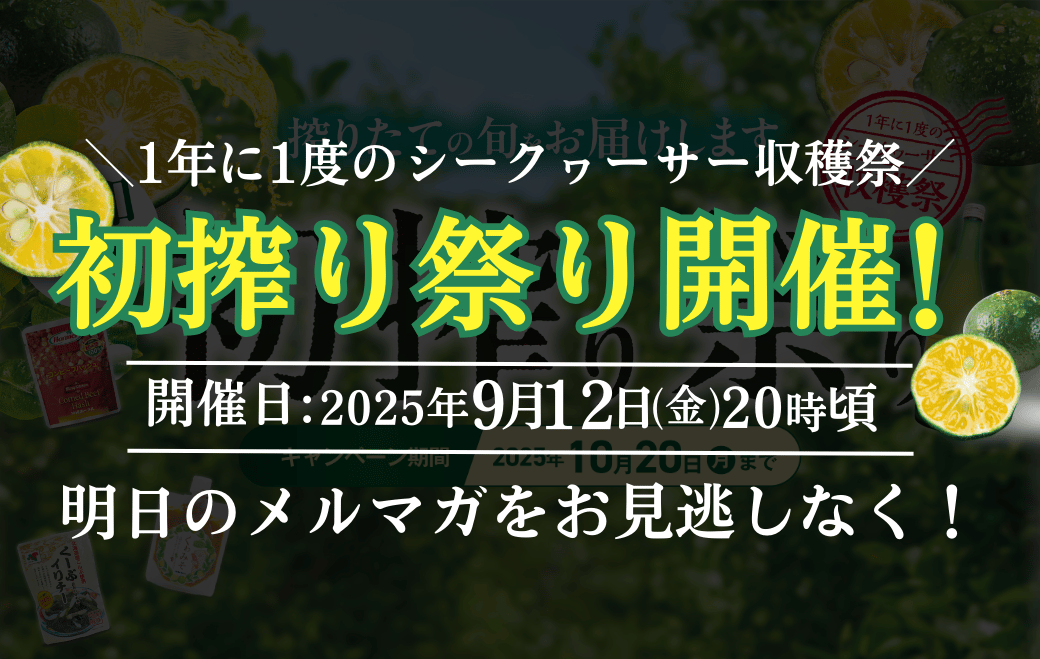 初搾り祭りキャンペーンの詳細については、2025年9月12日のメルマガにて解禁いたします。